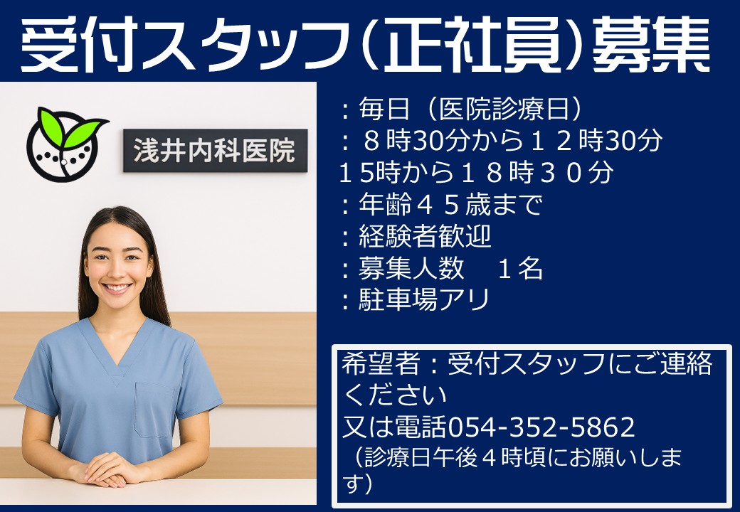 発熱外来受診希望の患者様、37.5度以上の発熱および新型コロナ感染症、インフルエンザ感染症の検査をご希望の方、は、通常の診察時間で診察しますが診察前に浅井内科医院まで電話(054−352−5862)を下さい。午前中人手不足のため、繁忙期は?煮でれないことがあります、オンライン予約をお願いします。通常の時間で診察しますが、診察までのお時間を弊院駐車場内ご自分のお車又は待合室パーティション内で待っていただきます。